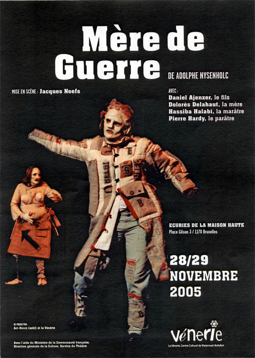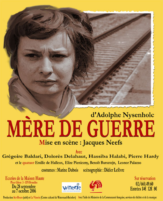 Représentations : avant-première le 16 septembre, à la gare de Feluy, et 14 séances aux Ecuries de la Maison Haute, Boitsfort, 25 septembre-7 octobre 2006, avec Gégoire Baldari, Dolorès Delahaut, Hassiba Halabi, Pierre Hardy, et le quatuor Benoît Bursztejn, Emilie de Halleux, Leonor Palazzo, Elise Pieniecny, mise en scène de Jacques Neefs, scénographie de Didier Lefebvre, avec l'aide du Ministère de la Communauté française et en coproduction avec la Vénerie.