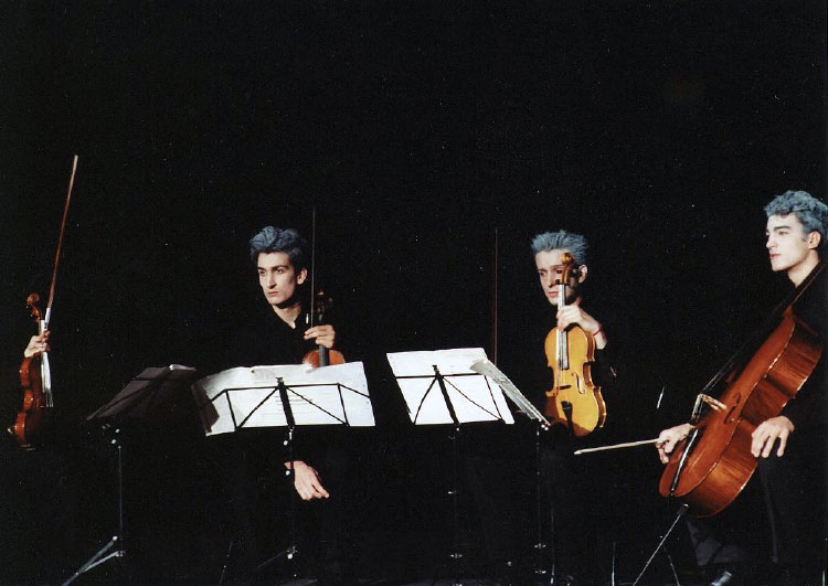 Salle Wyspianski, PWST, représentation, Cracovie, XIIIe Festival du Théâtre Universitaire de langue française de Cracovie, Institut Français., 27 avril 2004, scénographie : Marine Dubois, Quatuor Coryfeye, mise en scène de Jacques Neefs, avec reprise Salle André Delvaux (ULB), 19 mai 2004.